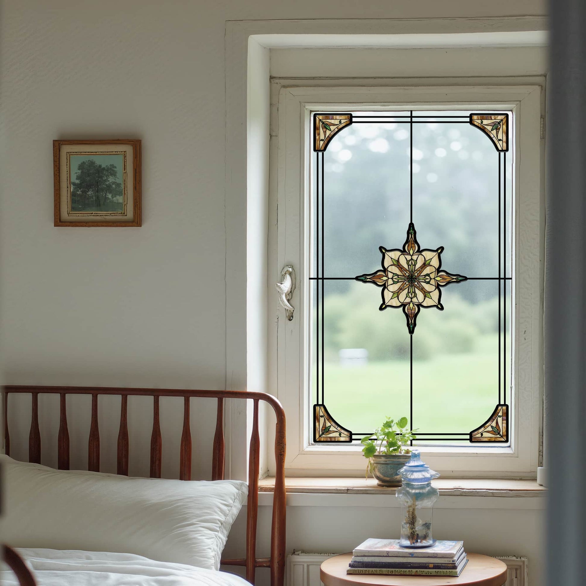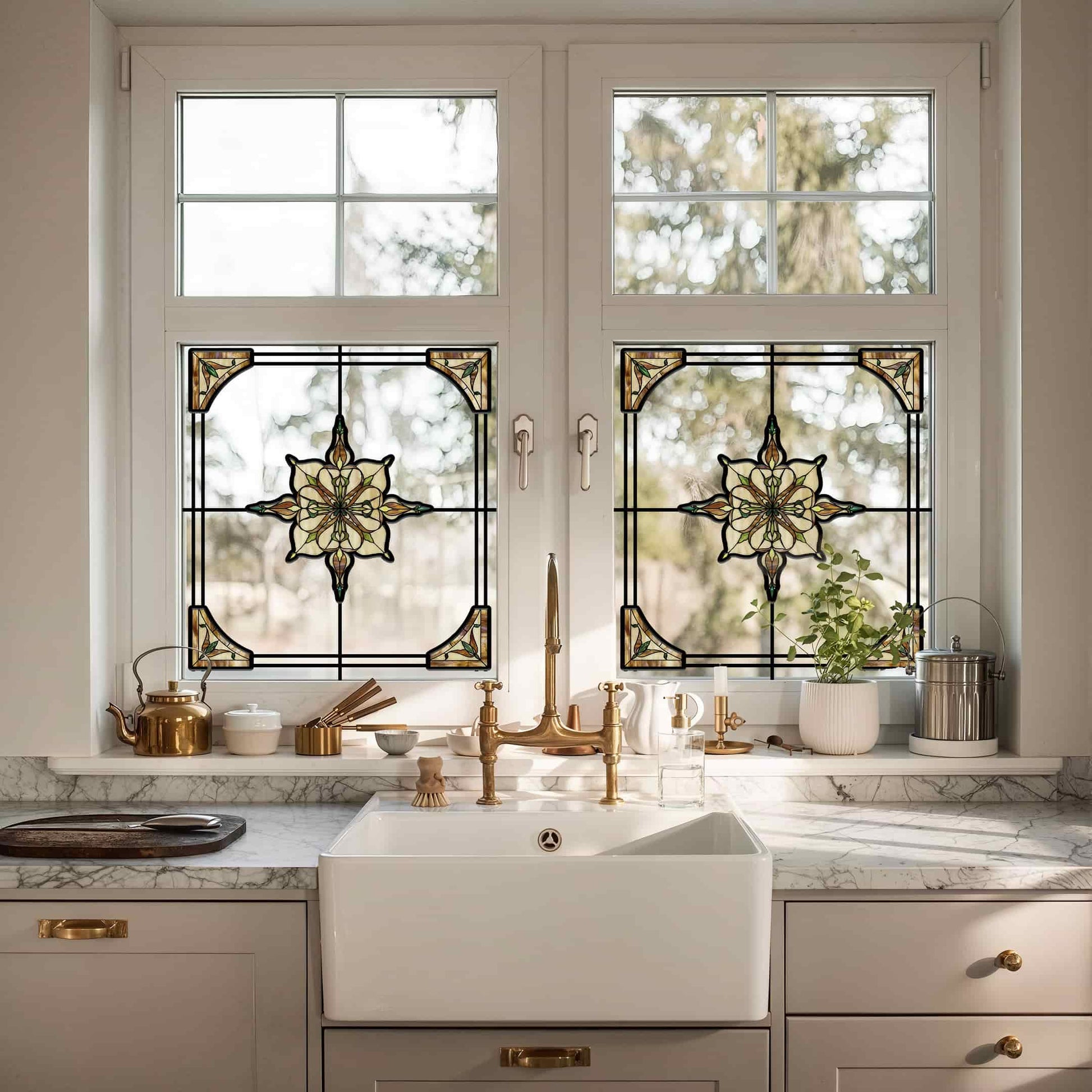 - Elegant Design: Transform your windows with our exquisite and refined green window sticker.Inspired by the Latin word for 'star', this design weaves delicate amber hues with ethereal starburst patterns. As sunlight filters through, it creates a mesmerizing interplay of golden radiance and twinkling lightβlike capturing moonlight through ancient amber crystals.