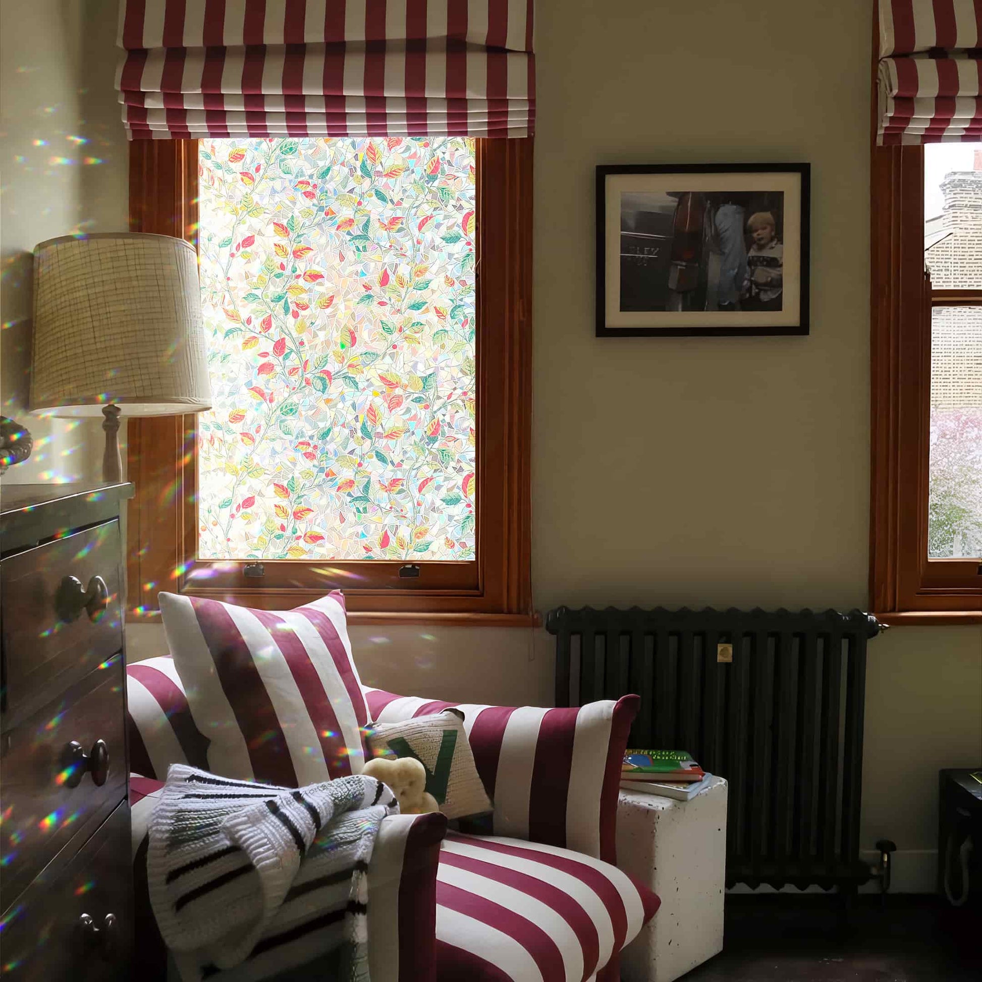 - UV Protection and Energy Efficiency: Our stained glass window film shields interiors from UV rays, preserving furniture and decor. It also enhances energy efficiency by balancing temps, keeping spaces cozy in all seasons.