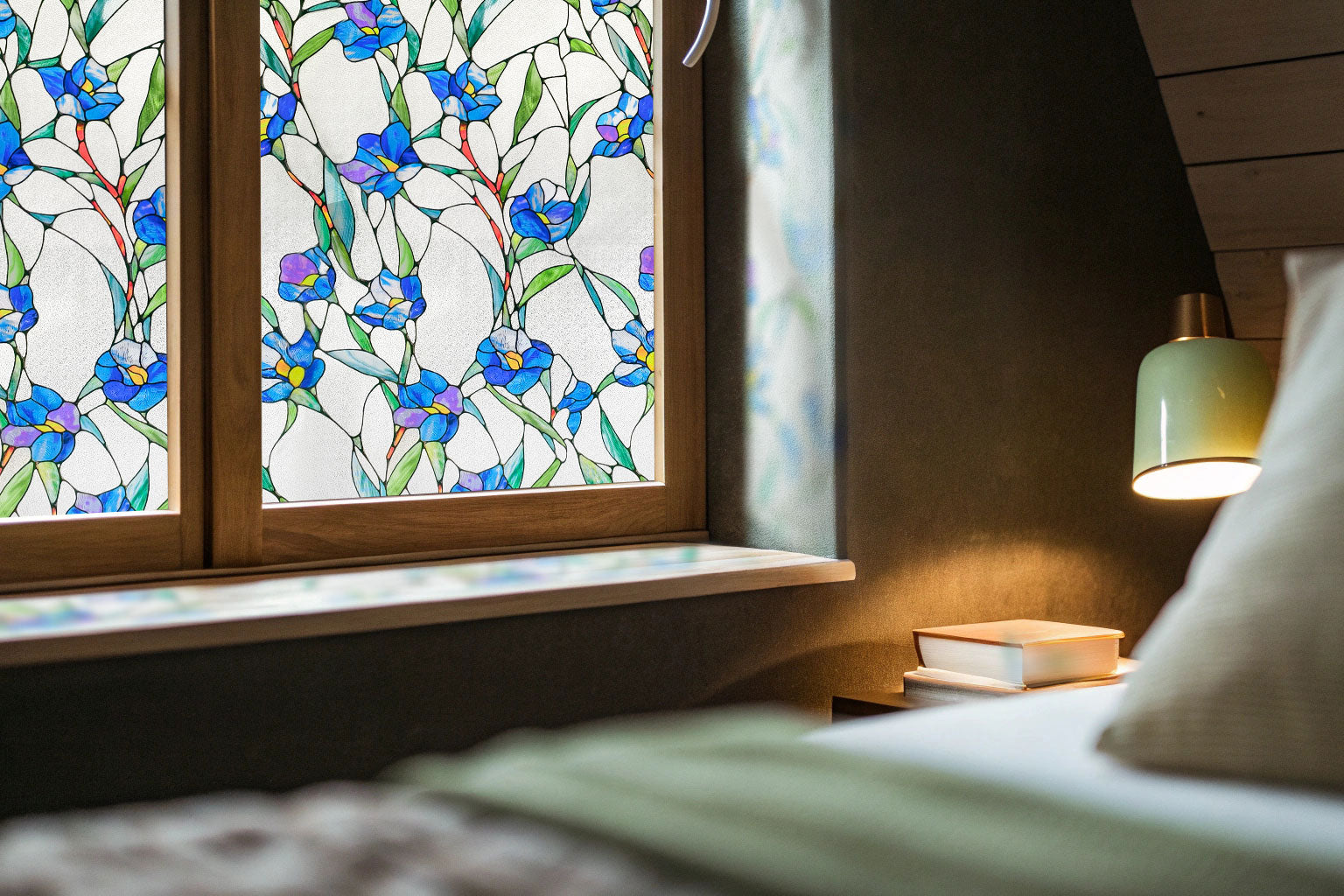 - Blue Eustoma -This window film features vibrant blue bellflowers, symbolizing hope and love. The design captures the essence of a wildflower meadow, where these blooms thrive in the gentle breeze, bringing a sense of calm and tranquility to any space.