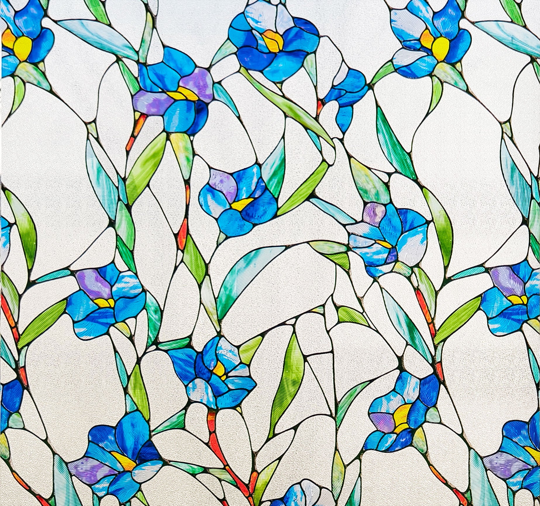 ADD.HERES Blue Eustoma 3D Stained Glass Window Film Static Cling