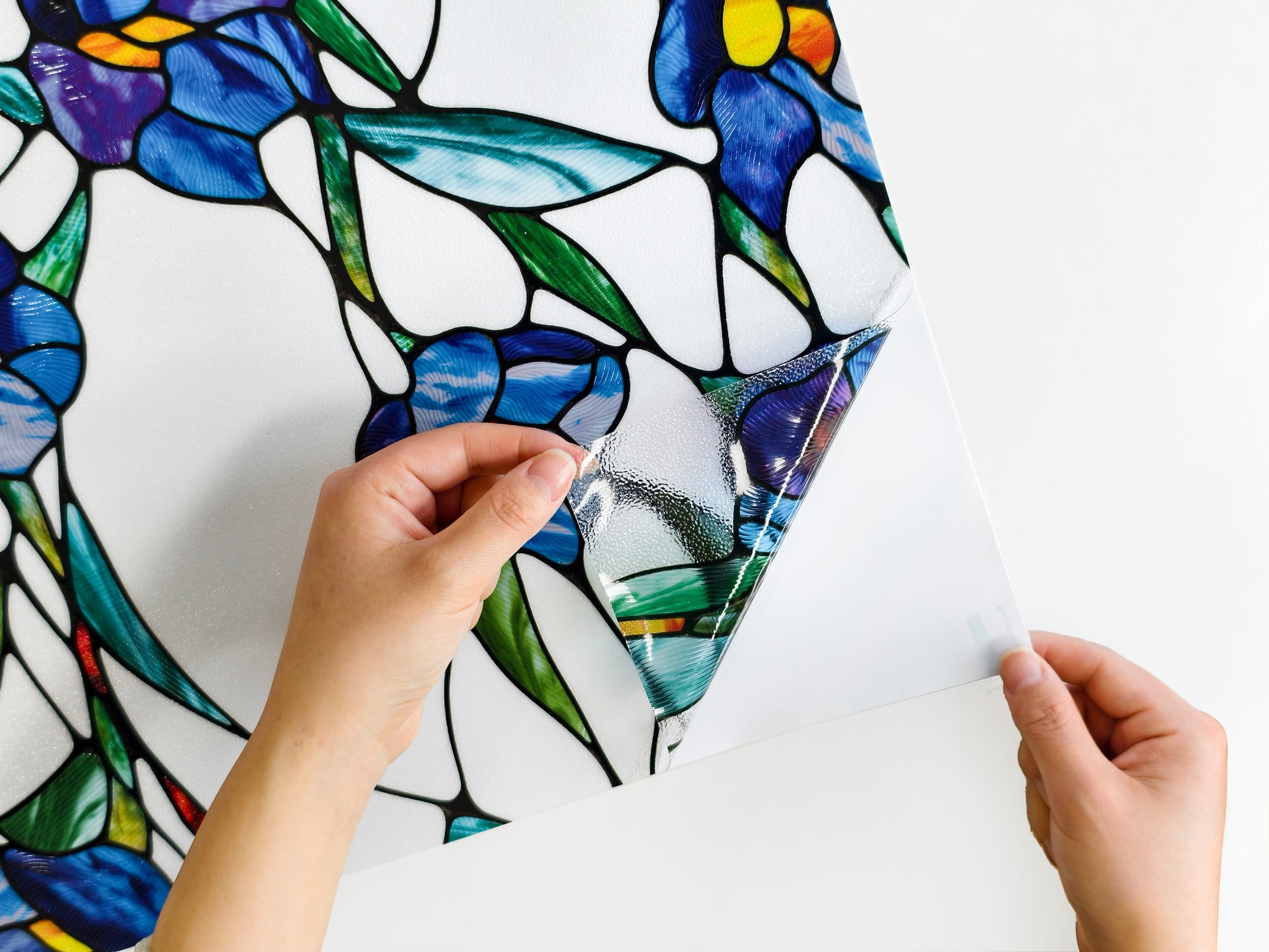 - Easy Installation and Adhesive-Free - Our stain glass film installs easily, no glue needed. Just measure, cut, and apply with water on clean glass. It's residue-free for easy repositioning or removal whenever you want a new look.