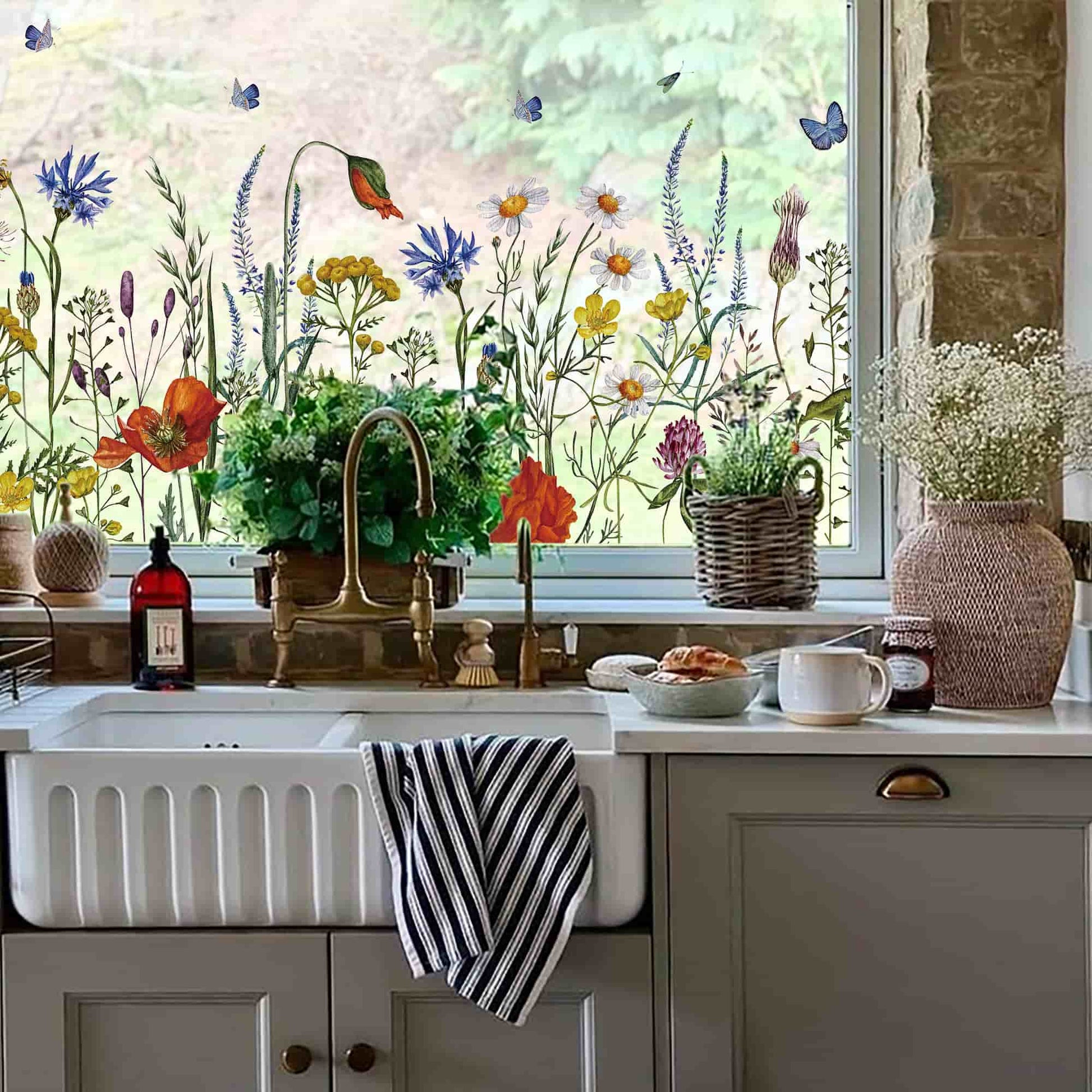 - Vibrant Window Decals - These colorful window stickers, inspired by flowers and butterflies, are perfect for decorating your home. The double-sided design ensures identical visibility for indoor and outdoor window films while also helping prevent bird collisions.