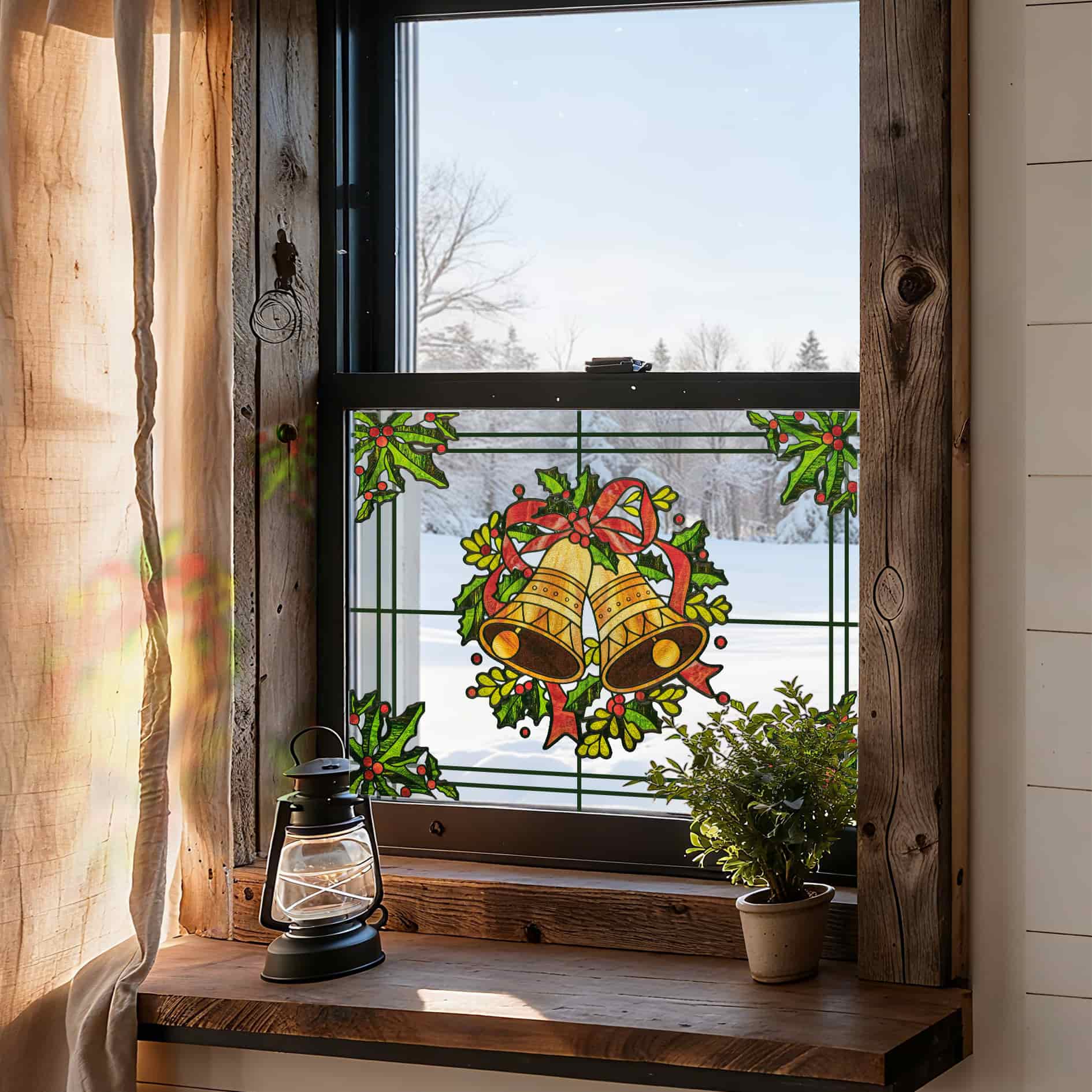 ADD.HERES Christmas Bells 3D Stained Glass Window Film Static Cling