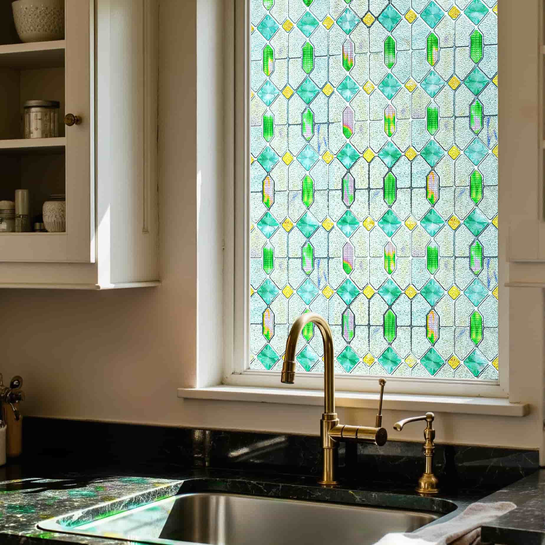 - Easy Installation and Adhesive-Free - Our stain glass film installs easily, no glue needed. Just measure, cut, and apply with water on clean glass. It's residue-free for easy repositioning or removal whenever you want a new look.