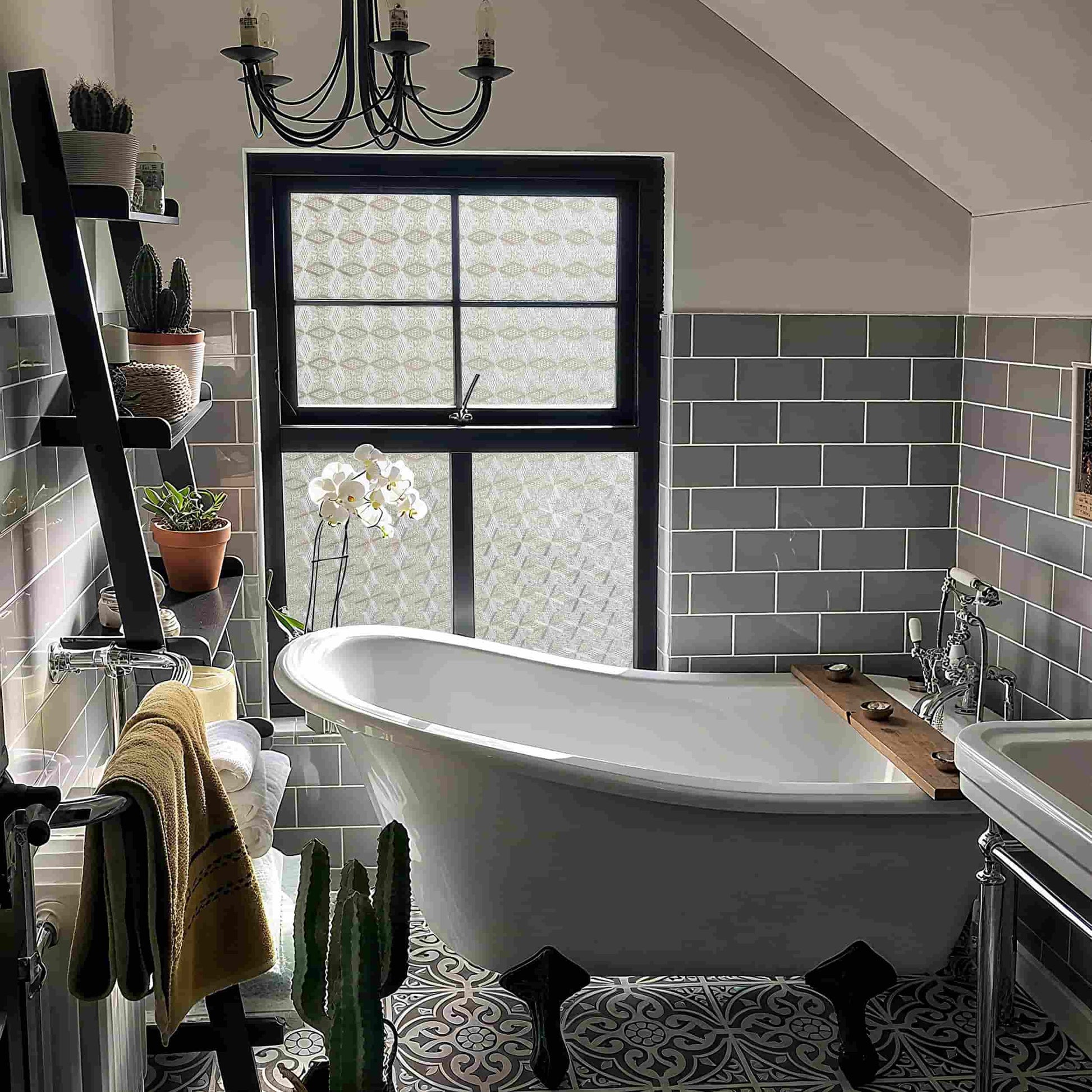 - UV Protection and Energy Efficiency - Our stained glass window film shields interiors from UV rays, preserving furniture and decor. It also enhances energy efficiency by balancing temps, keeping spaces cozy in all seasons.