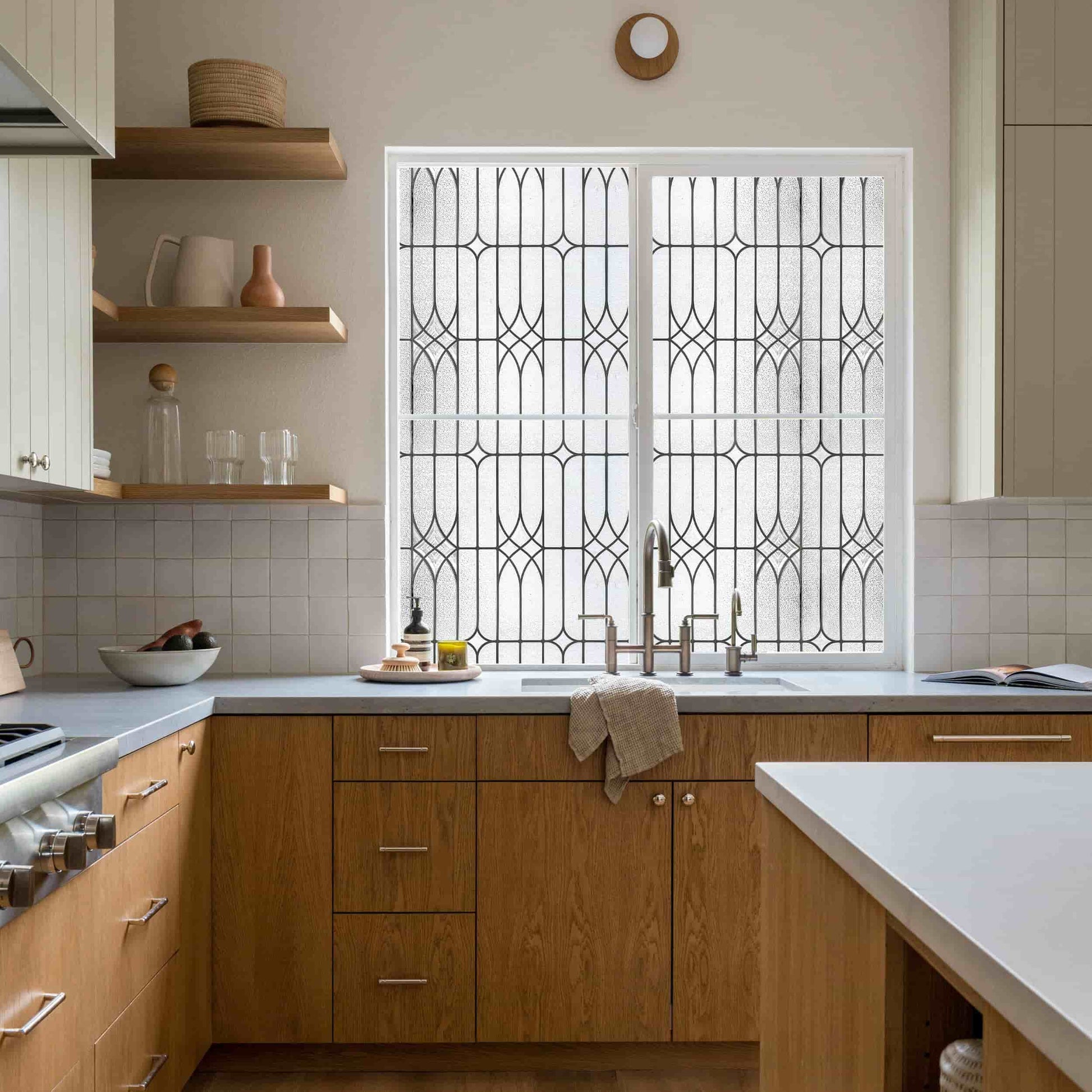 - UV Protection and Energy Efficiency - Our stained glass window film shields interiors from UV rays, preserving furniture and decor. It also enhances energy efficiency by balancing temps, keeping spaces cozy in all seasons.