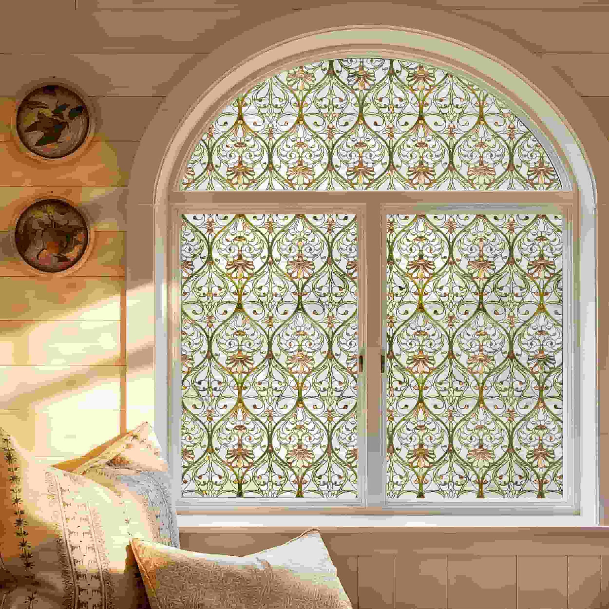 ADD.HERES Honeysuckle Ogee 3D Stained Glass Window Film Static Cling
