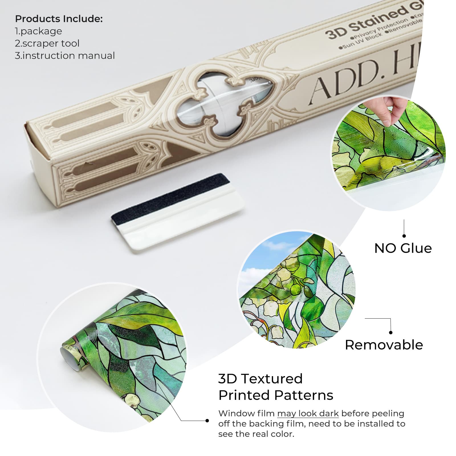 ADD.HERES Linglan 3D Stained Glass Window Film Static Cling