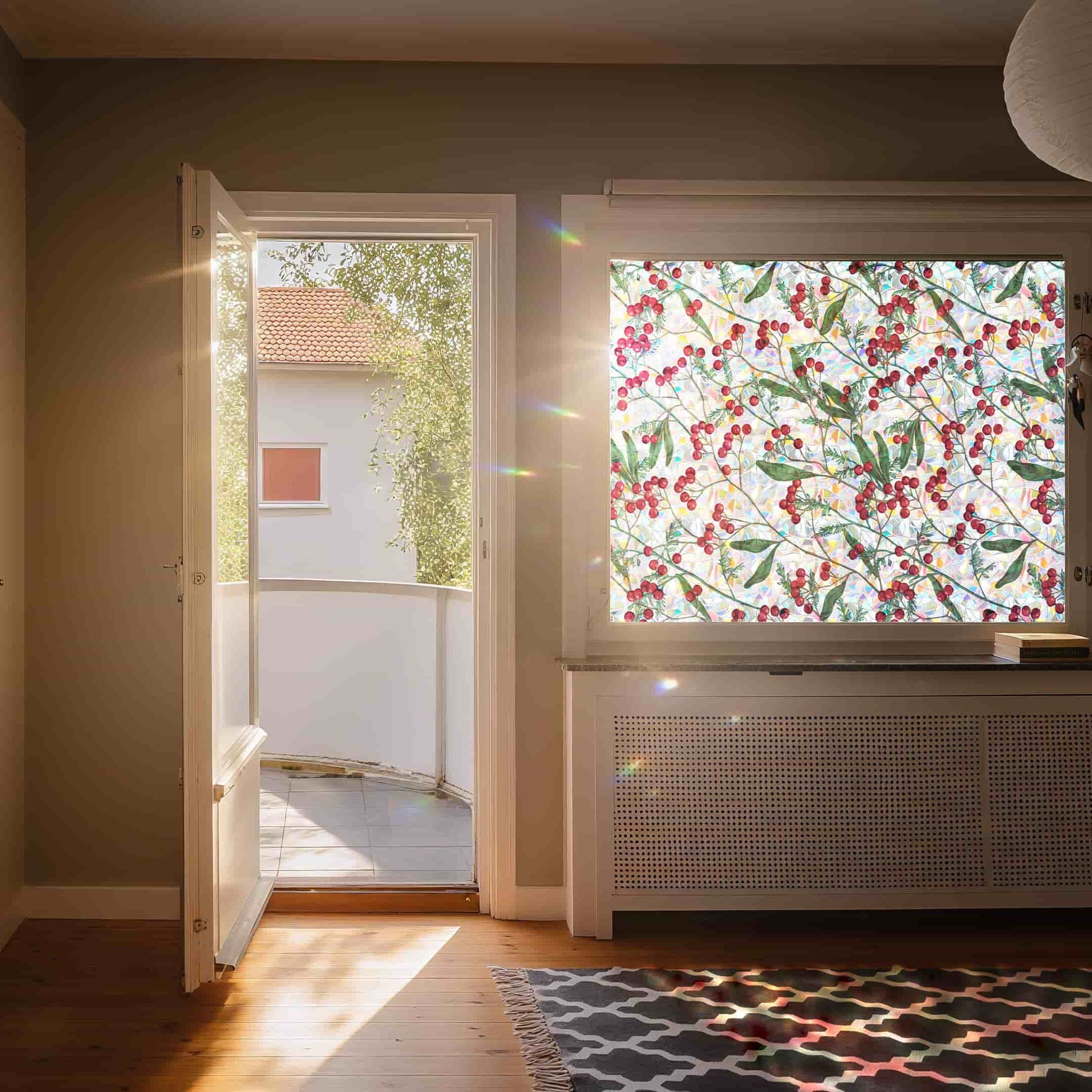 - Winter Berries – Transform your windows with dazzling winter berry window film.This decorative window film features laser effects that sparkle in the sunlight, adding a touch of technology to any space. The exquisite design imitates the appearance of real stained glass, making it the perfect complement to your home or office decor.
